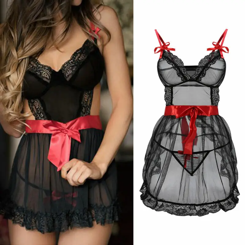 Meihuida Women Erotic Sex See-through Costume Lace Sexy-Lingerie Nightwear Underwear G-string Babydoll Sleepwear Dress